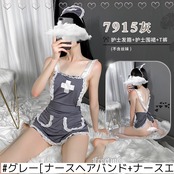 色:グレー[ナースヘアバンド+ナースエプロン+Tパンツ],グレー[ナースヘッドバンド+ナースエプロン+Tパンツ]+ロング