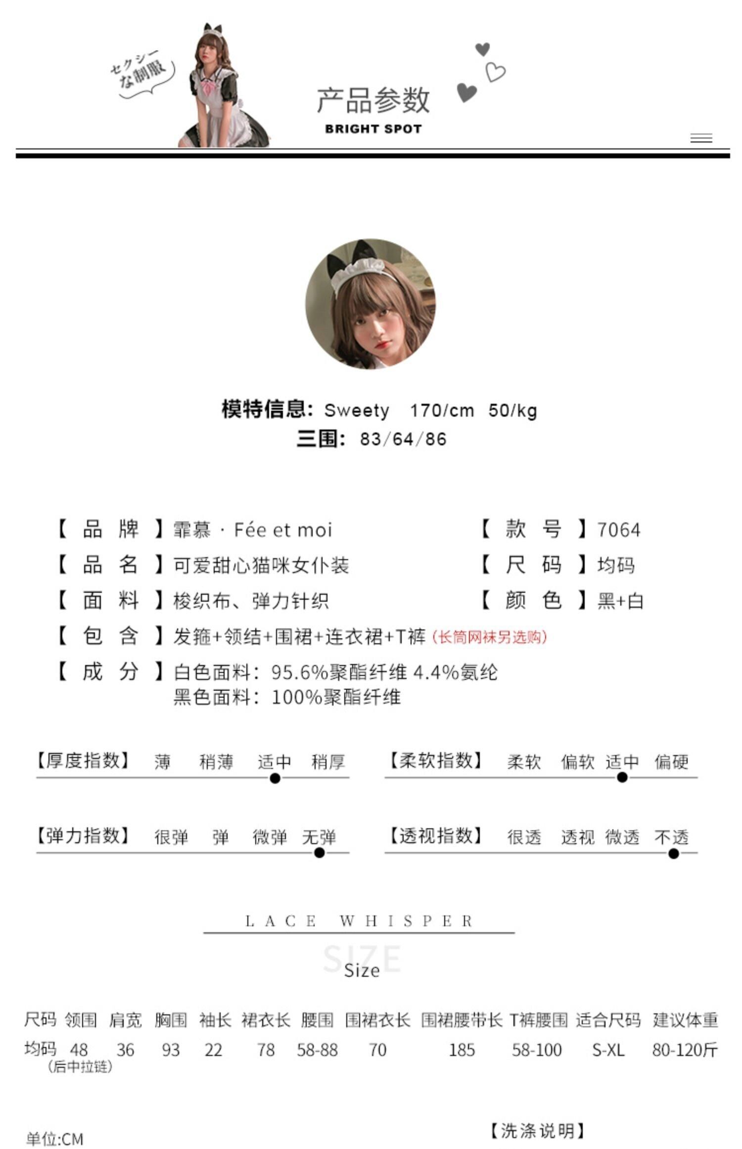 色:黒と白[ヘアバンド+蝶ネクタイ+エプロン+ドレス+T,結び目+エプロン+ワンピース+Tパンツ]+ストッキング