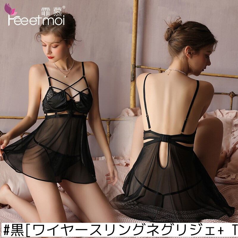 色:黒[ワイヤースリングネグリジェ+Tパンツ],豆ペーストカラー【ワイヤーリングスリングネグリジェ+Tパンツ】,キャラメルカラー[ワイヤースリングネグリジェ+Tパンツ],ホワイト【スチールリングサスペンダーネグリジェ+Tパンツ】