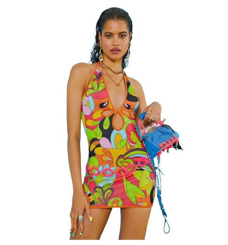 オータムVネックホルターバックドレス ショート 秋物 ヨーロピアン 9/24 ナイトウェア mi1152764484955