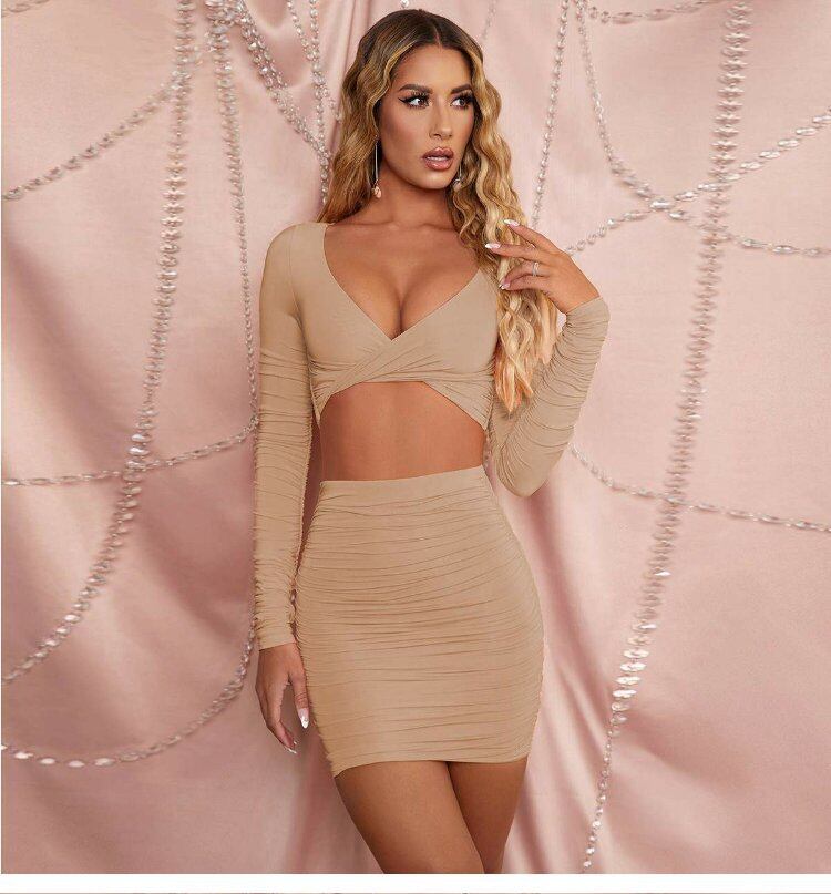 オータムウィンターVネックプリーツスカート ロング 大きめサイズ 秋物 冬物 ヨーロピアン 9/24 ナイトウェア mi1172939204100