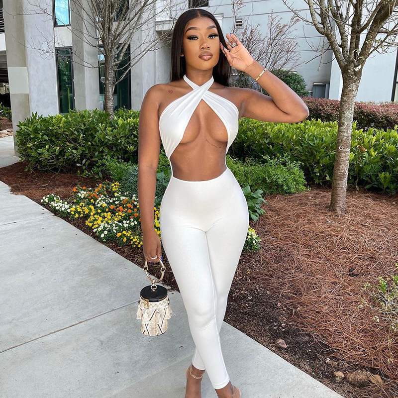 オータムウィンターバックレスホルターワンピースソリッド カラーパンツ 秋物 冬物 ソリッドカラー ヨーロピアン 9/24 ナイトウェア mi111616562025