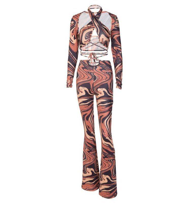 オータムウィンタープリント柄ホルターストラップ ロング 秋物 冬物 ヨーロピアン 9/24 ナイトウェア mi1134692492856