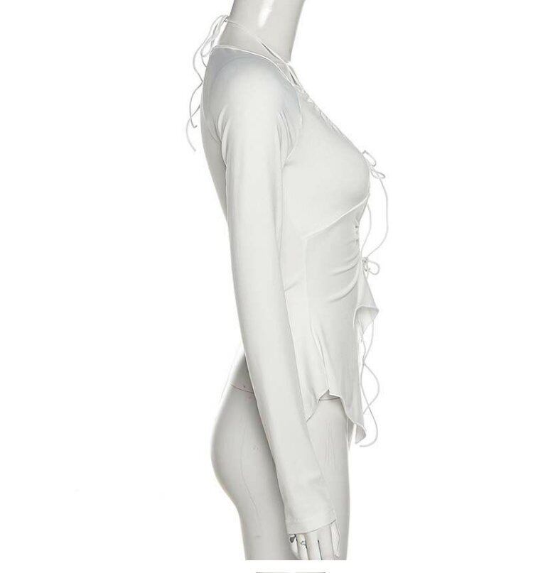 スタイルオータムトップス ソリッド カラースリムフィットプリーツレースTシャツ ロング 秋物 ソリッドカラー ヨーロピアン 9/24 ナイトウェア mi1123786248836