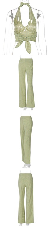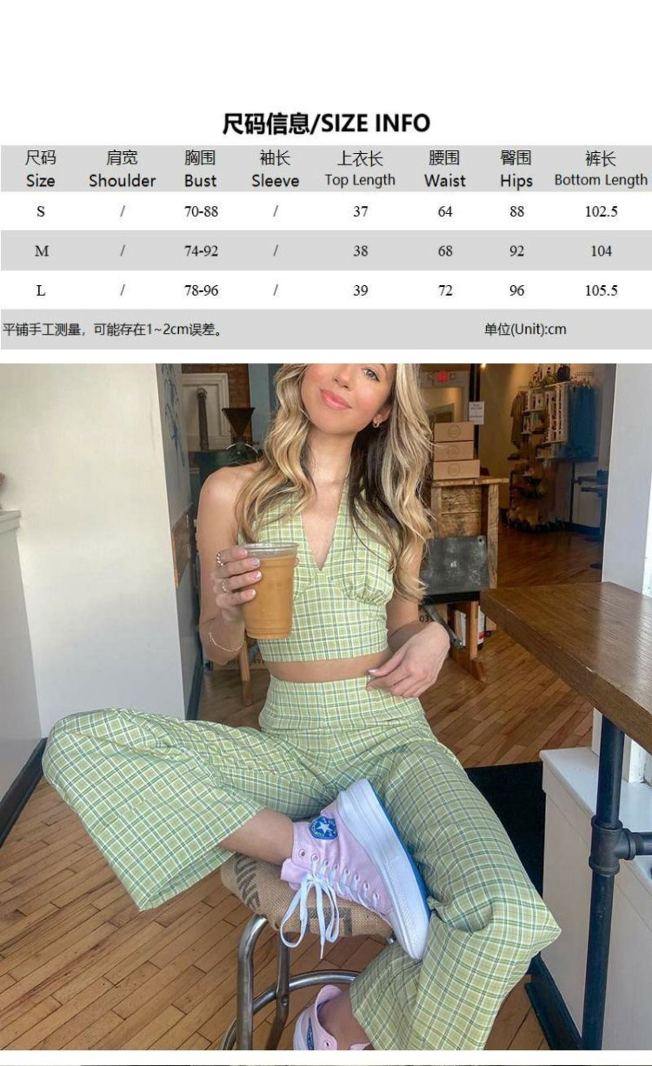 サマーレースショート格子柄Vネックパンツ ストリート 夏物 9/24 ナイトウェア mi1195729459923