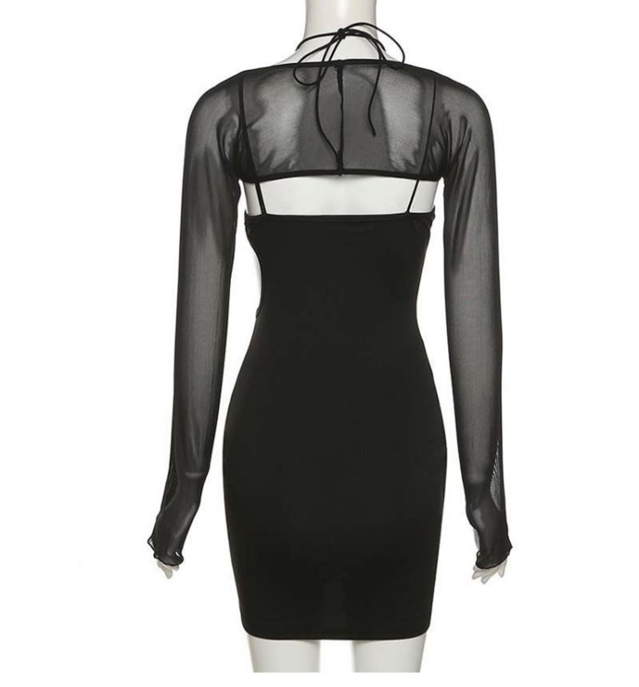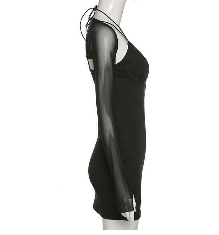 オータムメッシュホルターレーススリムスカート ツーピース 秋物 スリムヒップ 9/24 ナイトウェア mi1147890149038
