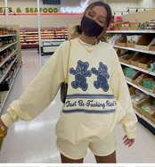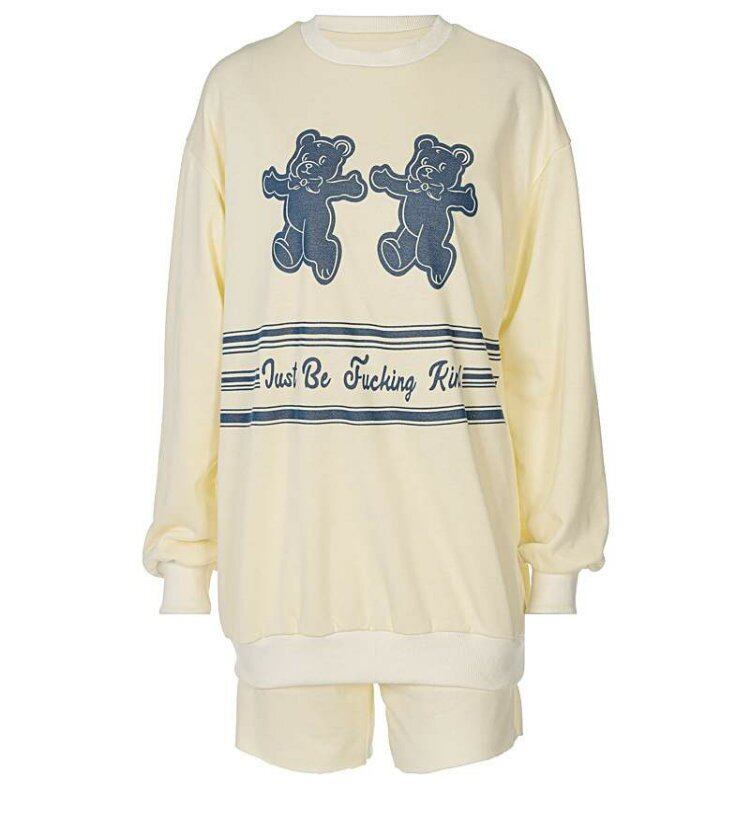スタイルオータムルーズプリント柄ラウンドネックセーター ショーツ 秋物 ブルマー Oネック ヨーロピアン 9/24 ナイトウェア mi1149197702593