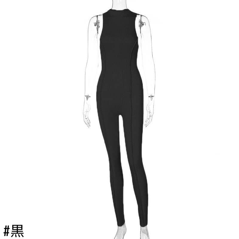 オータムソリッド カラースリムフィットノースリーブジャンプスーツ オールインワン 秋物 ソリッドカラー ヨーロピアン 9/24 ナイトウェア mi1172872529647