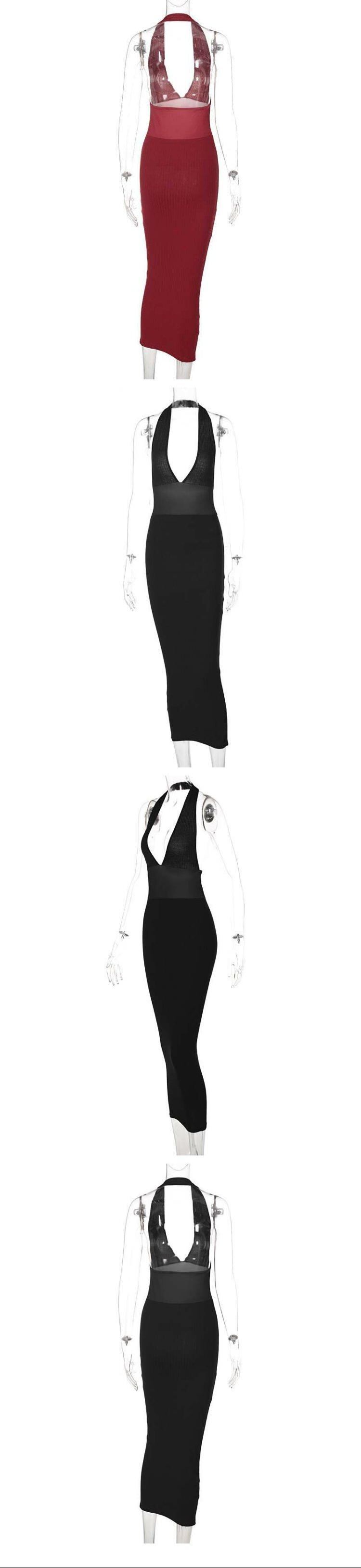 スプリングバックレスホルターVネックスリムドレス 春物 ヨーロピアン 9/24 ナイトウェア mi1191029555447