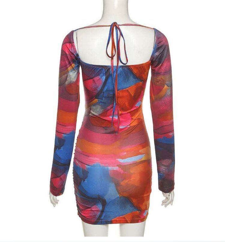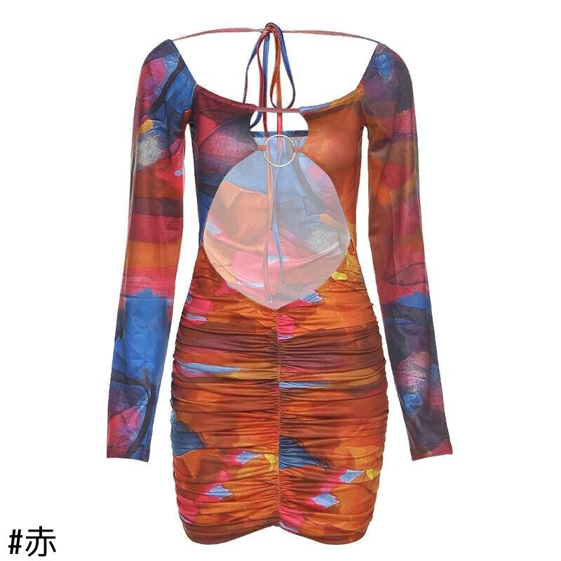 スタイルオータムウィンタープリーツバックレスドレス プリントスリム 秋物 冬物 9/24 ナイトウェア mi1154982335810