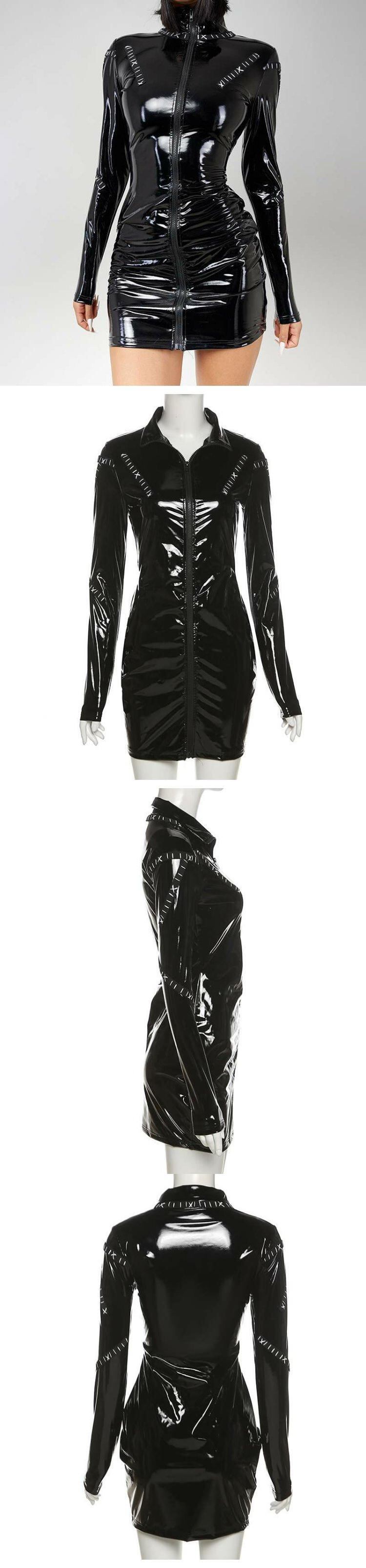 カラースタイルオータムレザージッパードレス 秋物 ヨーロピアン 9/24 ナイトウェア mi114945489234
