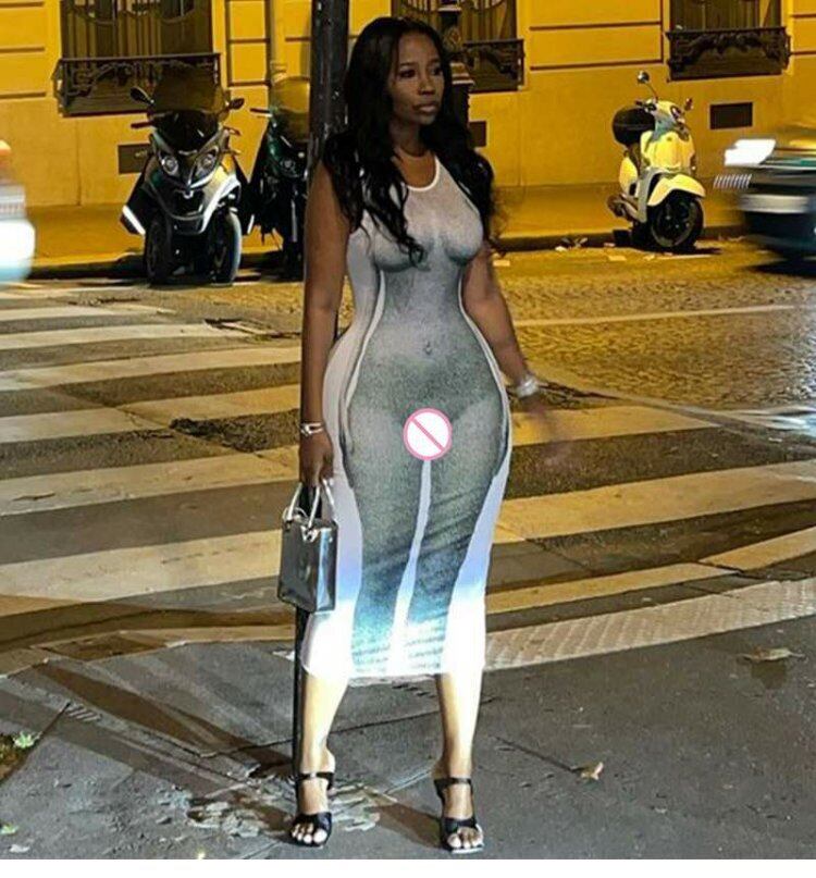 サマースリムプリント柄ラウンドネックノースリーブスタイルドレス 夏物 Oネック ヨーロピアン 9/24 ナイトウェア mi1127723879997