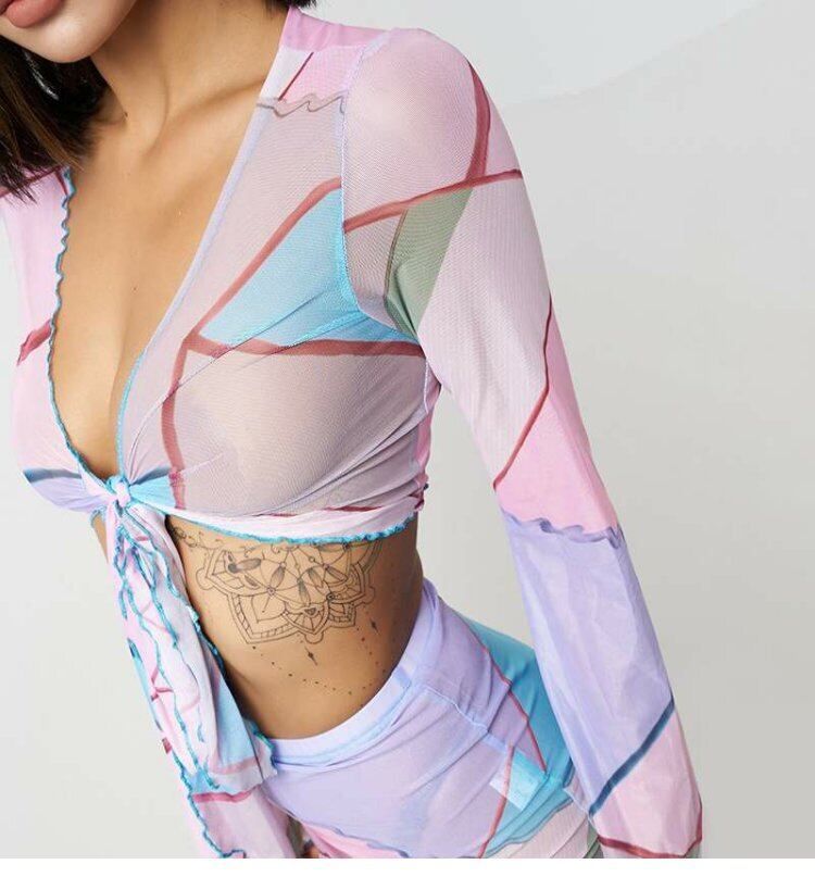 スタイルオータムVネックレーススリーブメッシュTシャツ スカート 秋物 ヨーロピアン 9/24 ナイトウェア mi1141294144572