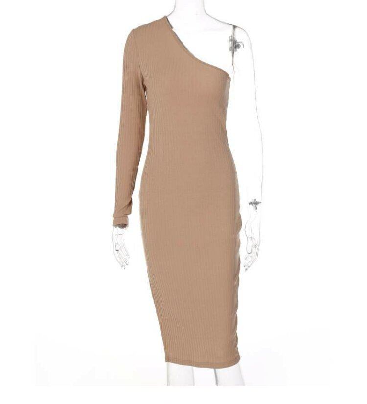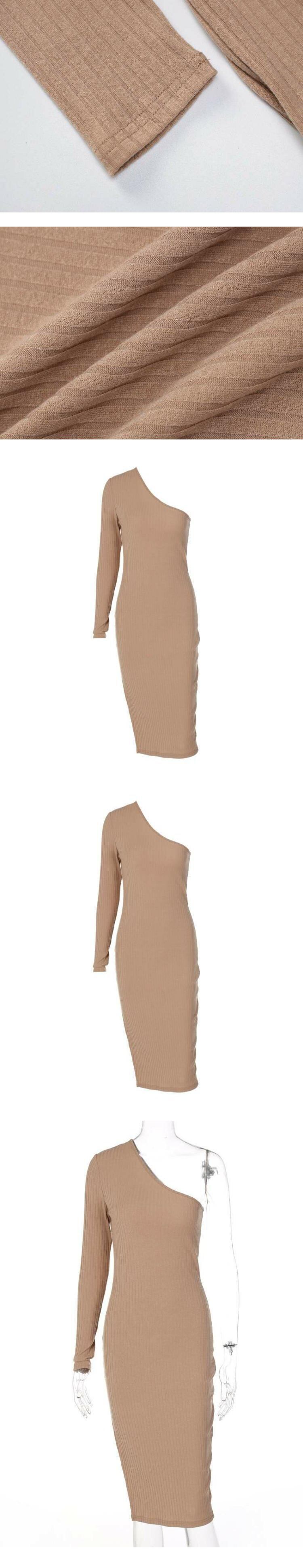 オータムソリッド カラー長袖スリーブスリットドレス ロング 秋物 ソリッドカラー ヨーロピアン 9/24 ナイトウェア mi1154454102747