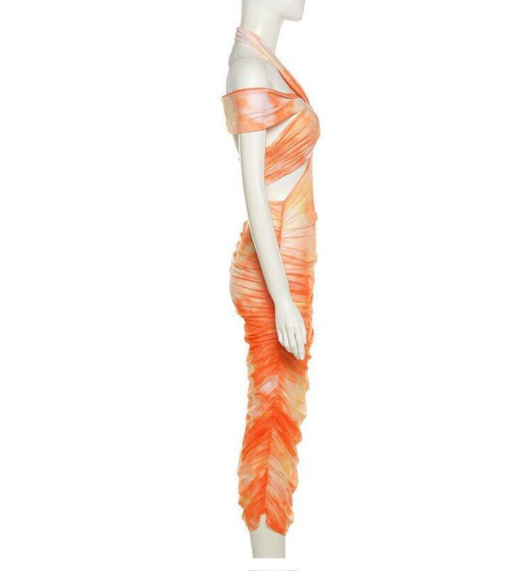 サマーホルターメッシュプリント柄プリーツジャンプスーツ オールインワン 夏物 9/24 ナイトウェア mi118643051422