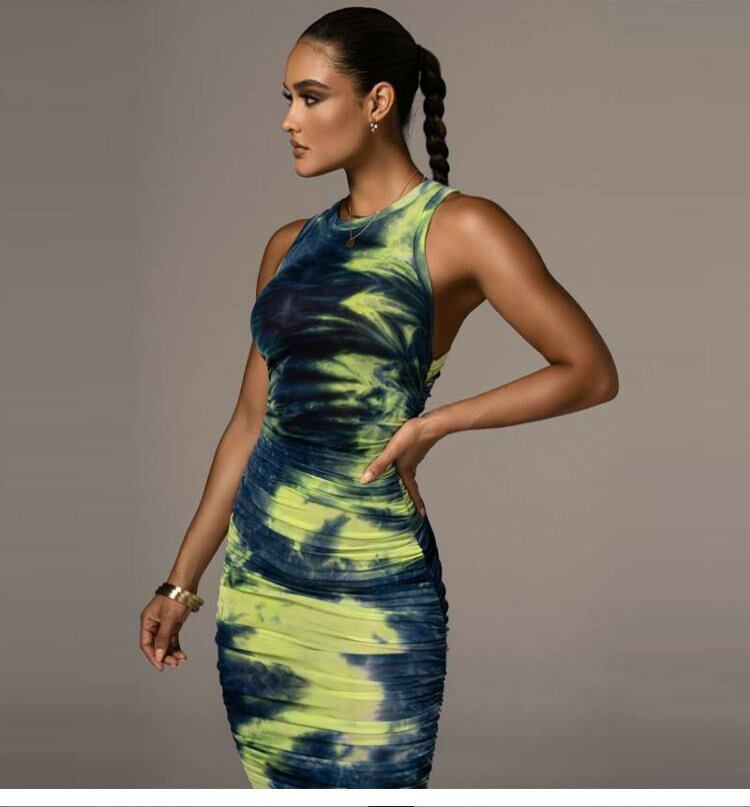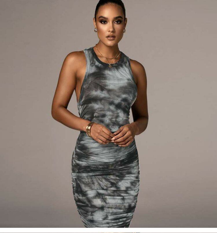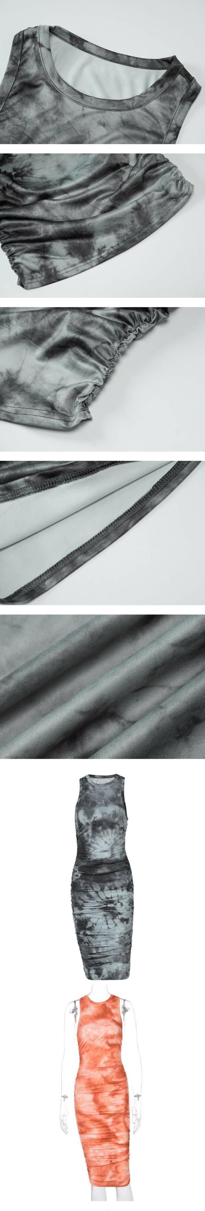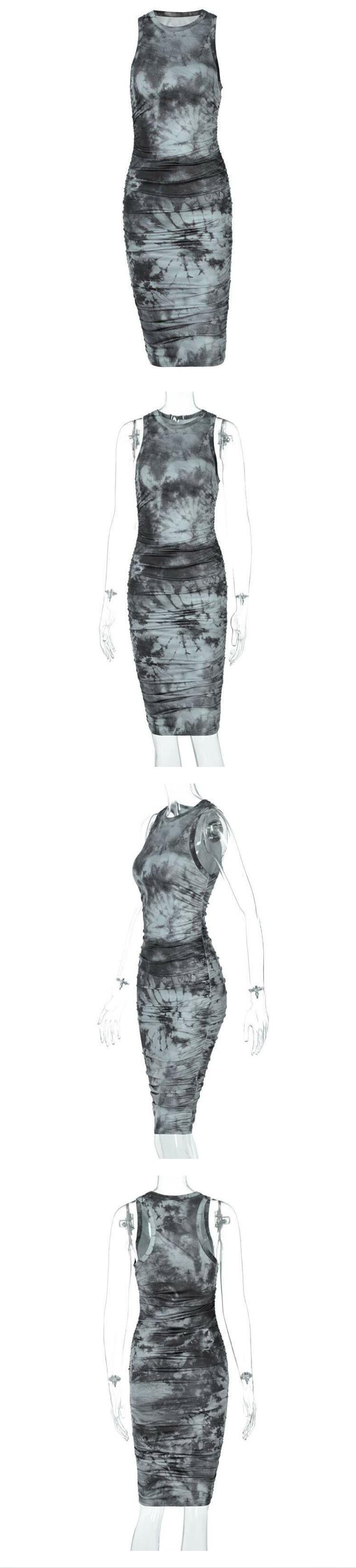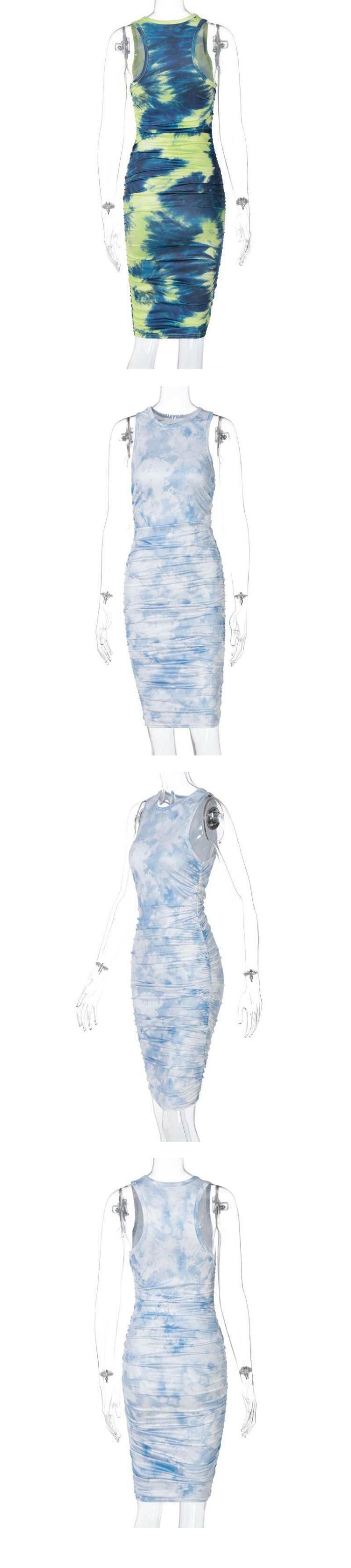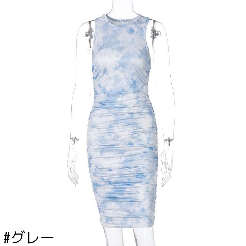 スタイルドレス ノースリーブラウンドネックプリントミディスカート スリムオータム 秋物 Oネック ヨーロピアン 9/24 ナイトウェア mi1141210018905