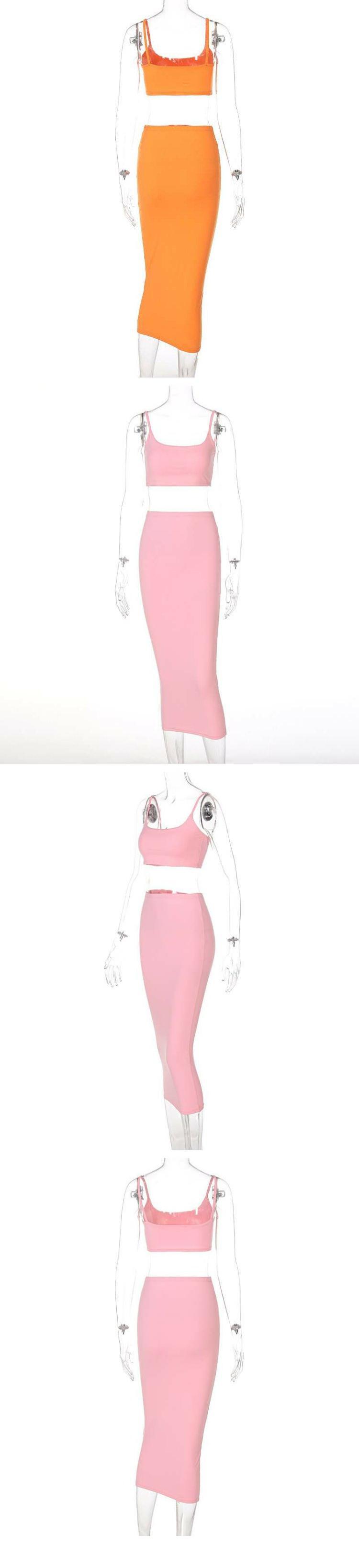 カジュアルサマーソリッド カラーミディスカート ツーピース 夏物 ソリッドカラー ヨーロピアン 9/24 ナイトウェア mi1165097305840