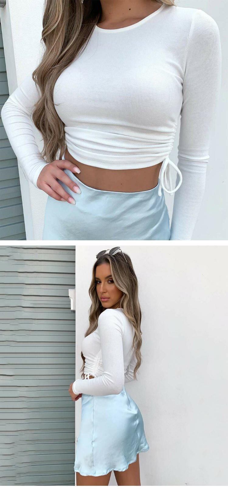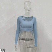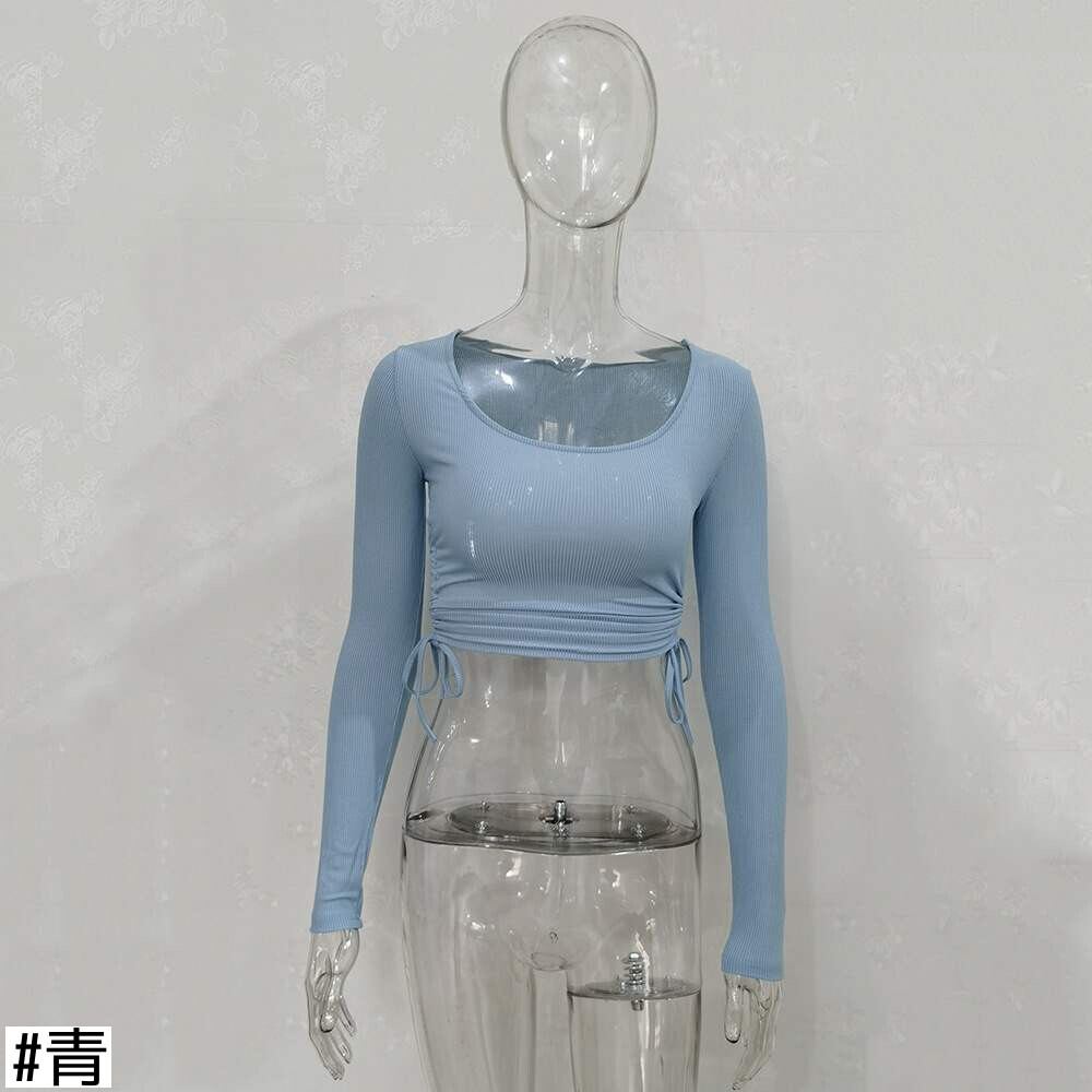 オータムスタイルスリムサイドギャザーTシャツ ショートトップス ロング 秋物 ヨーロピアン 9/24 ナイトウェア mi1167684662131