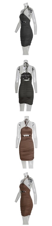 クロススプリングサマーソリッド カラーホルターショートスカート ドレス 春物 夏物 ソリッドカラー 9/24 ナイトウェア mi1111248444772