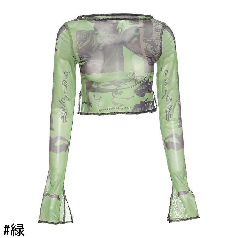 オータムトップス メッシュプリントスリムフィット ストリート 秋物 ヨーロピアン 9/24 ナイトウェア mi1134396981426