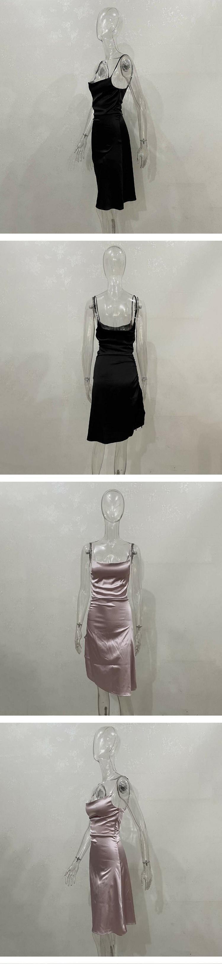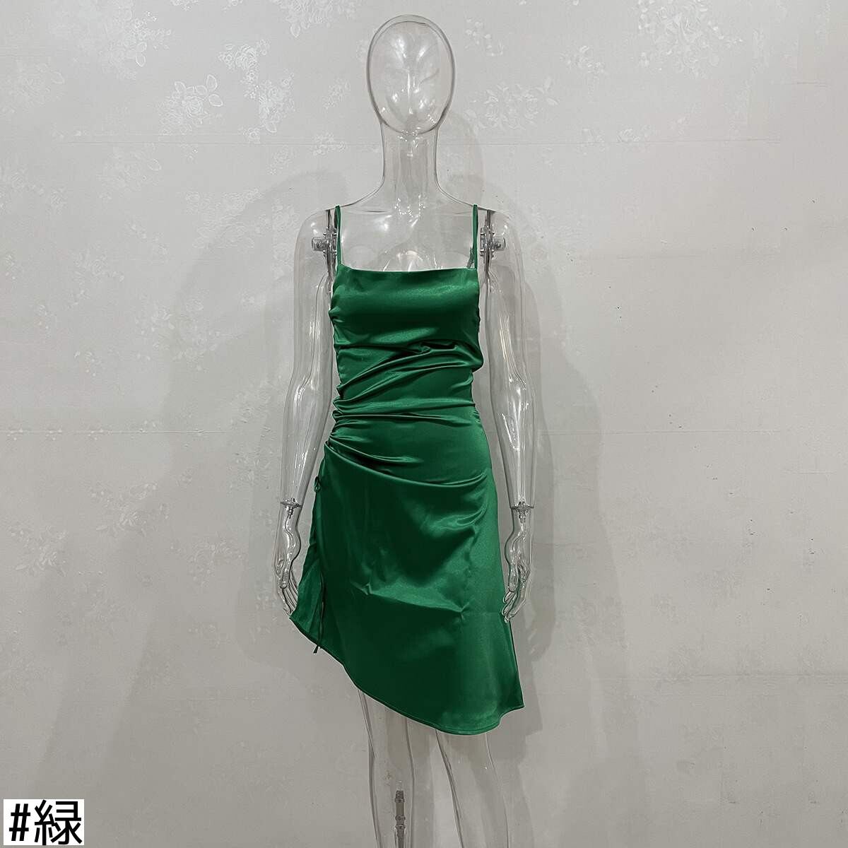 サテンサイドドレス スカート ソリッド カラーブレスト ソリッドカラー 9/24 ナイトウェア mi11225298717