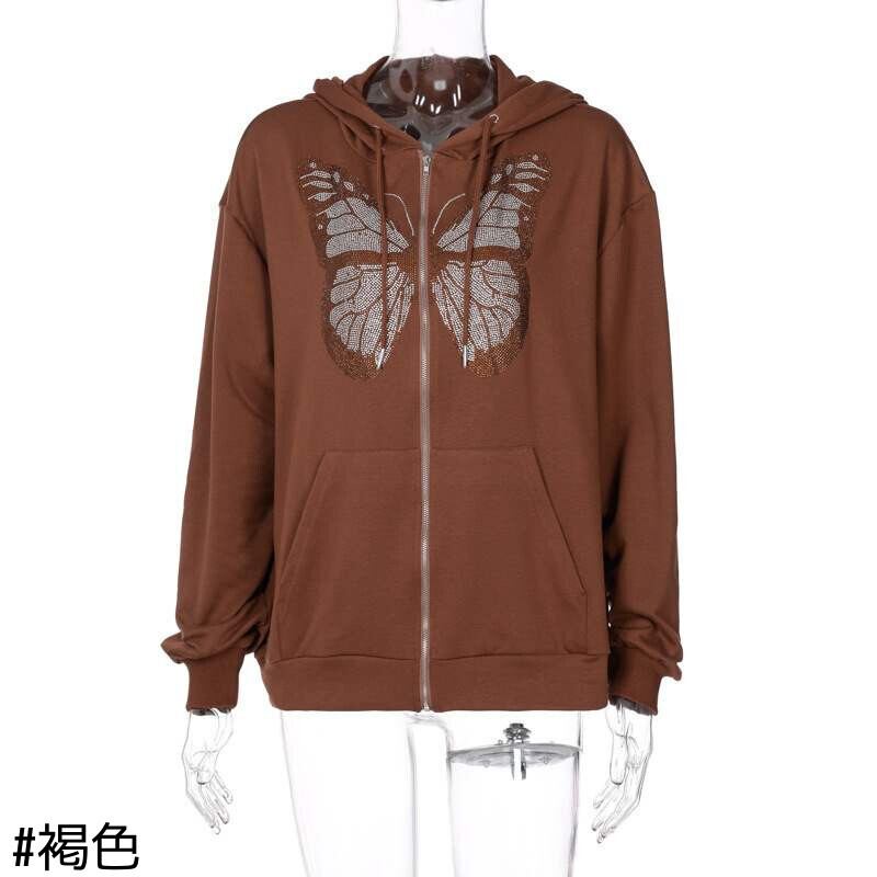 スタイルジッパーButterflyデザイン フードルーズセーター クロス ロング ヨーロピアン 9/24 ナイトウェア mi1158556155643