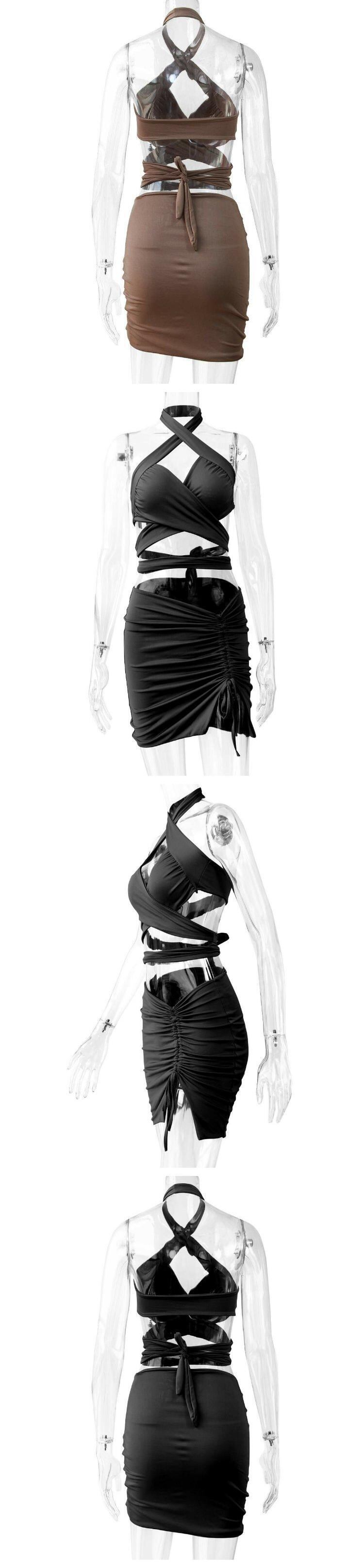 サマークロスホルタープリーツスカート 夏物 ヨーロピアン 9/24 ナイトウェア mi1153742726209