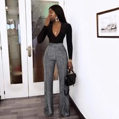 オータムウィンターVネックジャンプスーツ オールインワン ロング 大きめサイズ 秋物 冬物 ヨーロピアン 9/24 ナイトウェア mi1146647047864