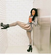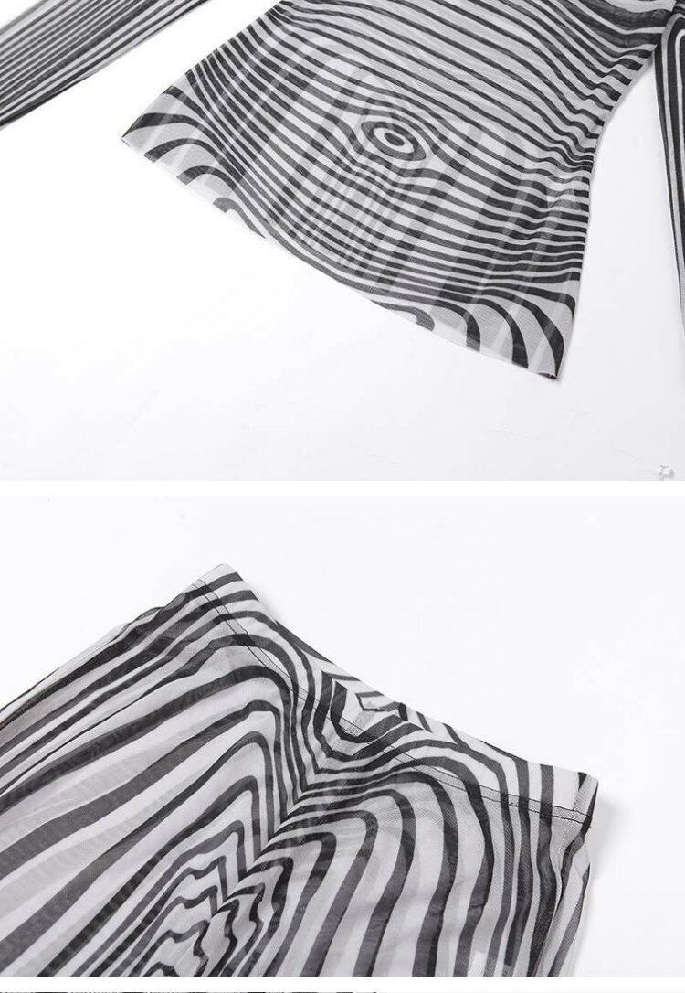 オータムストライプメッシュプリントスリム ロング 秋物 スリムヒップ 9/24 ナイトウェア mi1112409538856