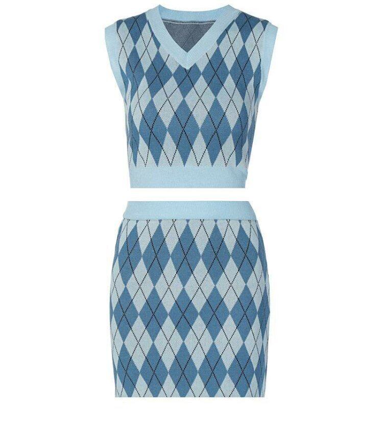 スタイルスプリングカジュアル格子柄ニットスカート 春物 ヨーロピアン 9/24 ナイトウェア mi1133374086634