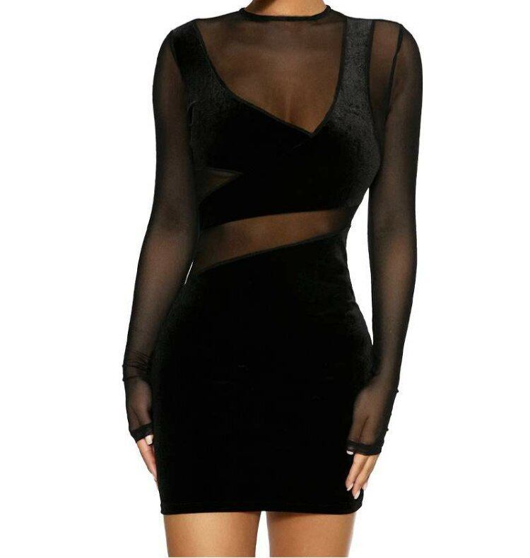 ドレス ワンピース オータムウィンターソリッド カラーメッシュアウター ロング 秋物 冬物 ソリッドカラー ヨーロピアン ステッチ 9/24 ナイトウェア mi1184113167204