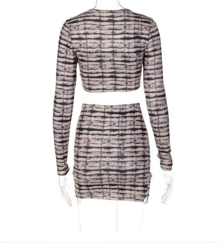 スタイルオータムプリント柄ストライプトップス ショートスカート ツーピース レース 秋物 レースアップ ヨーロピアン 9/24 ナイトウェア mi1111928427961