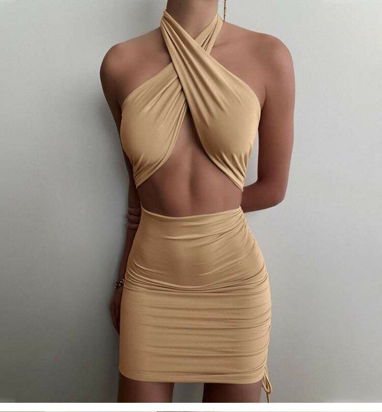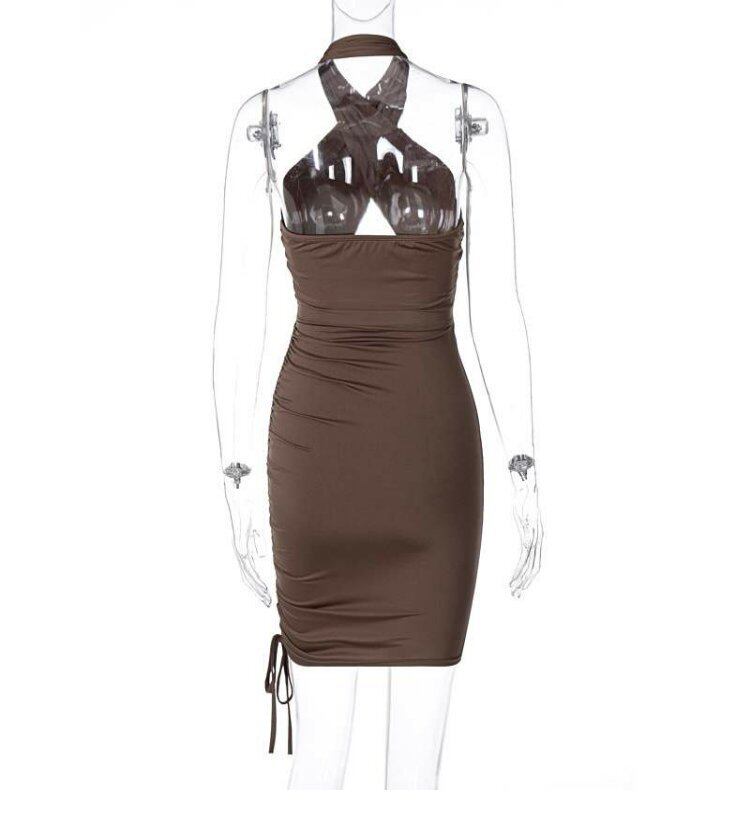 オータムドレス ソリッド カラープリーツホルター 秋物 ソリッドカラー ヨーロピアン 9/24 ナイトウェア mi1162496303328