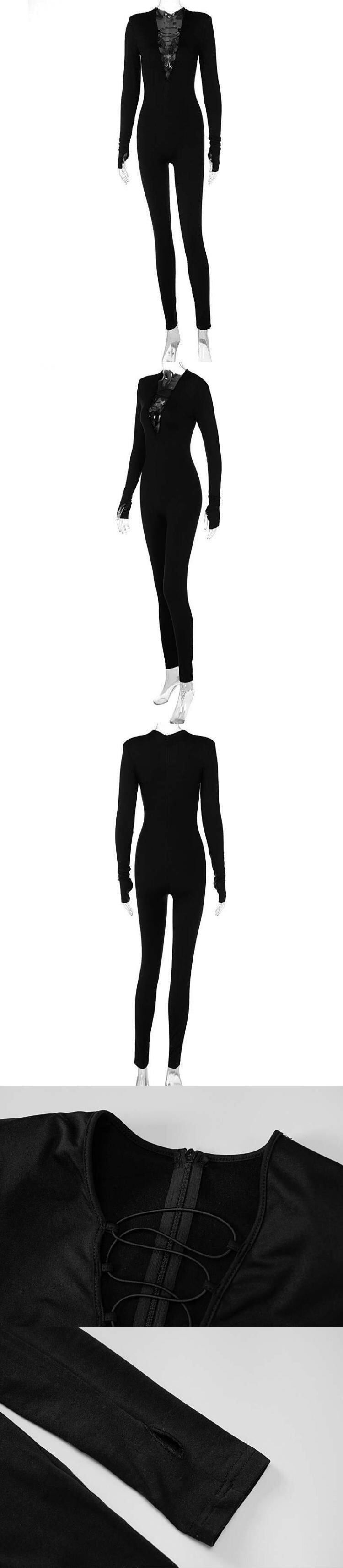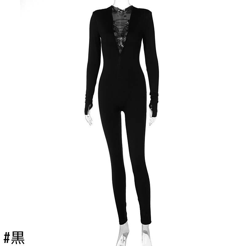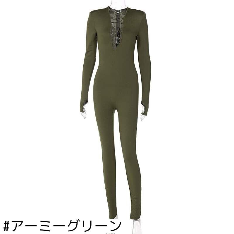 オータムVネックハイウェストウェストジャンプスーツ オールインワン ロング 秋物 ヨーロピアン 9/24 ナイトウェア mi1144267426954