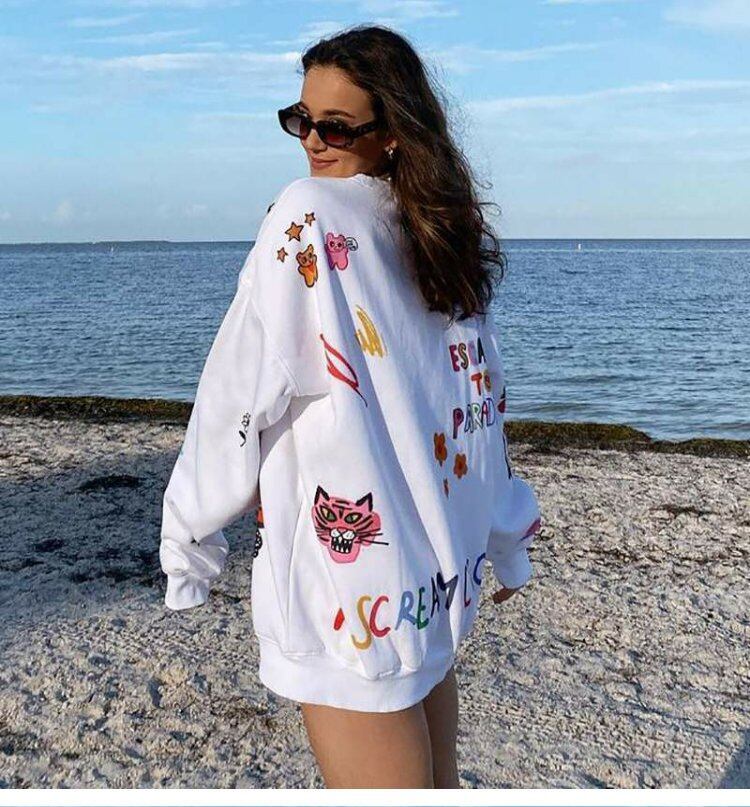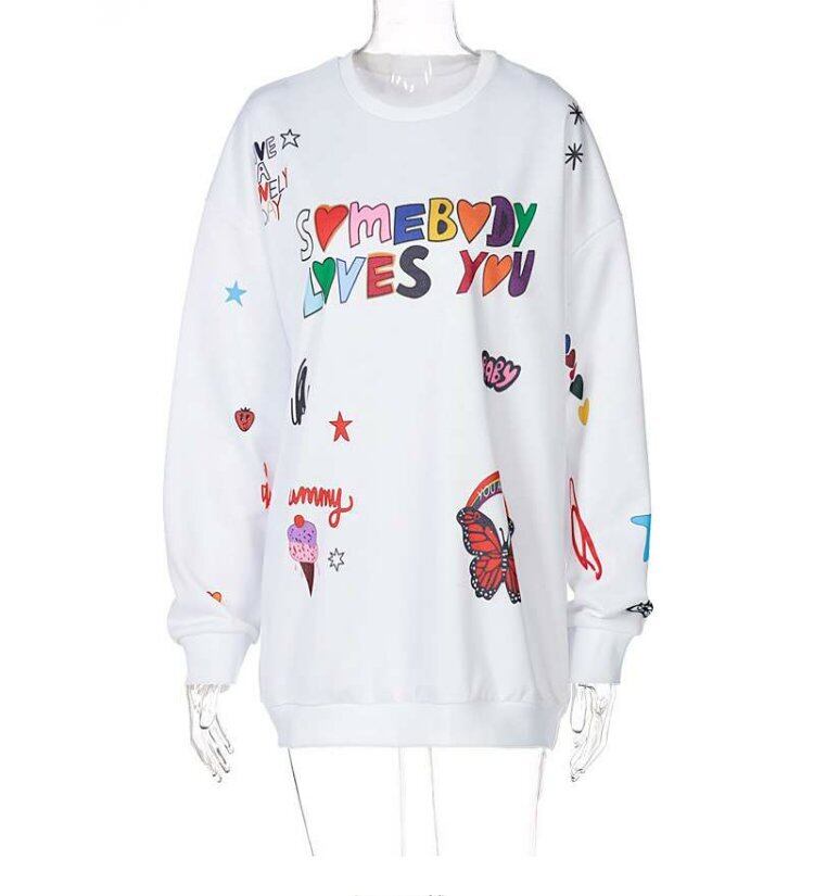 オータムウィンターラウンドネックプリントロングルーズカジュアルセーター クロス 長袖 秋物 冬物 Oネック ヨーロピアン 9/24 ナイトウェア mi119801970850