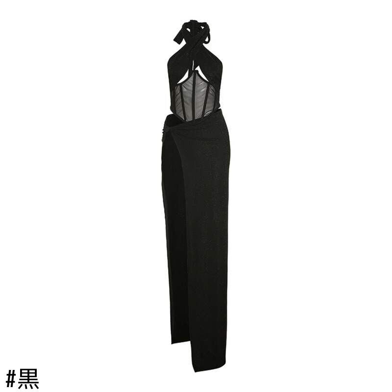 オータムウィンターホルタークロスバックスリットスカート 秋物 冬物 ヨーロピアン 9/24 ナイトウェア mi1153481931254