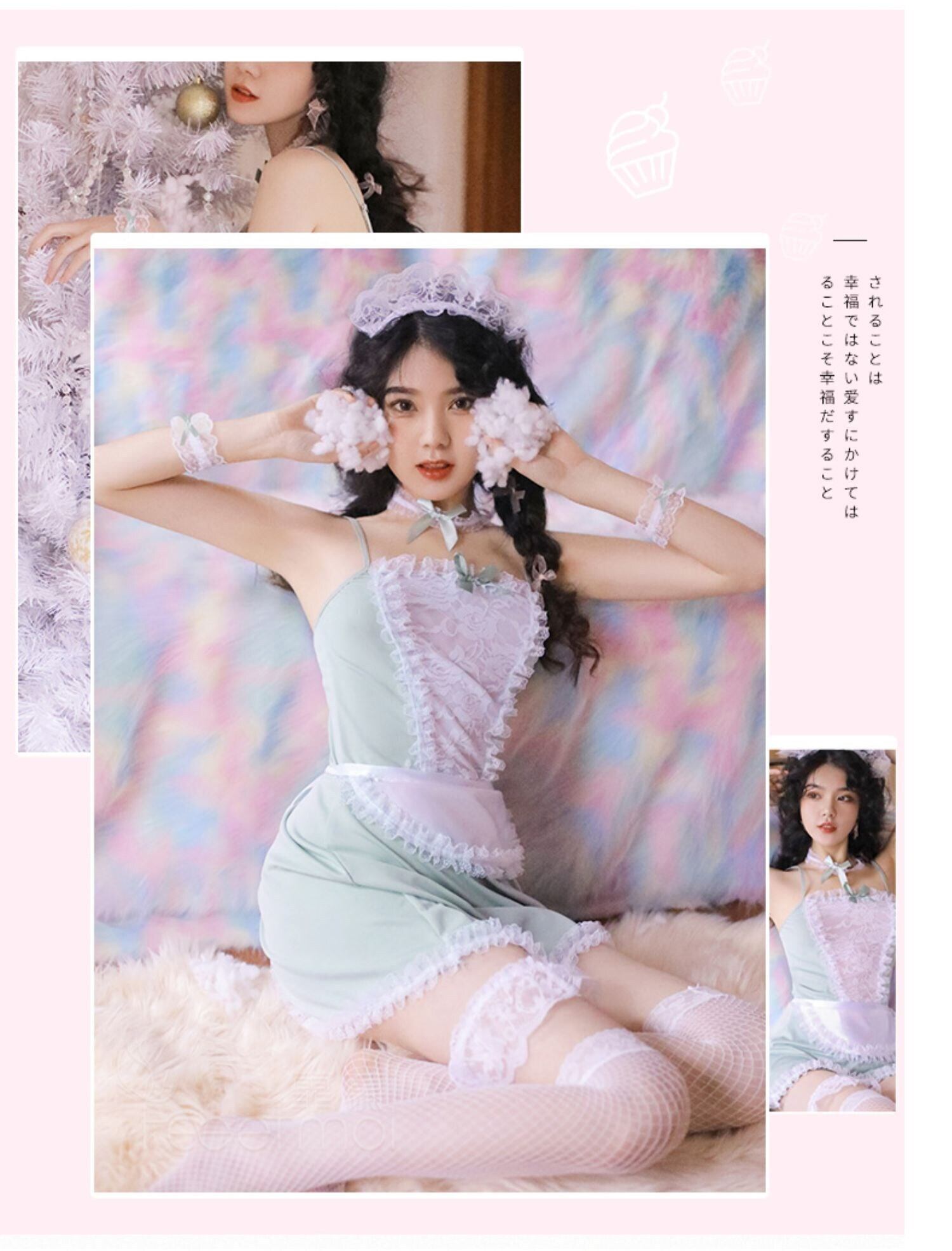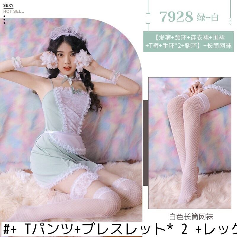 色:+Tパンツ+ブレスレット*2+レッグリング]+白いストッキング,ピンク+ホワイト[ヘアバンド+ネックリング+ドレス+エプロン+T,黒+白[ヘアバンド+ネックリング+ドレス+エプロン+T,スカート+Tパンツ+ブレスレット*2+レッグリング]+ロングチューブネットソックス,緑+白[ヘアバンド+ネックリング+ドレス+エプロン+T