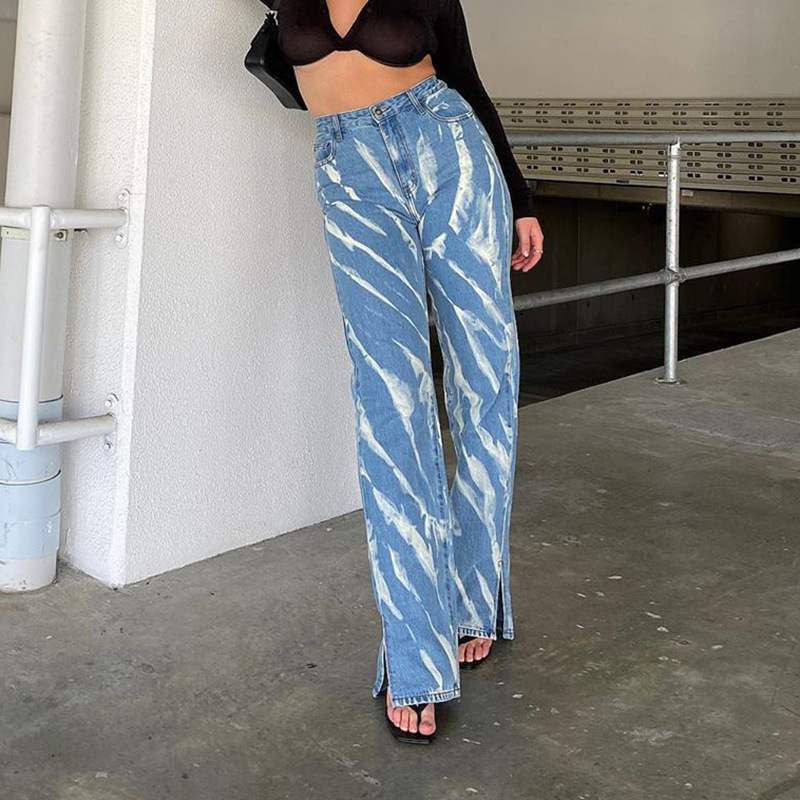 オータムジーンズ プリントスリットハイウェストウェスト 秋物 ヨーロピアン 9/24 ナイトウェア mi1144723904839