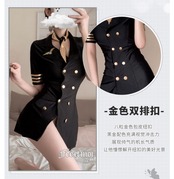 色:ブラック+ゴールド[帽子+ダブルブレスト服+スカーフ+T,ダブルブレスト服+スカーフ+Tパンツ]+パンスト網タイツソックス