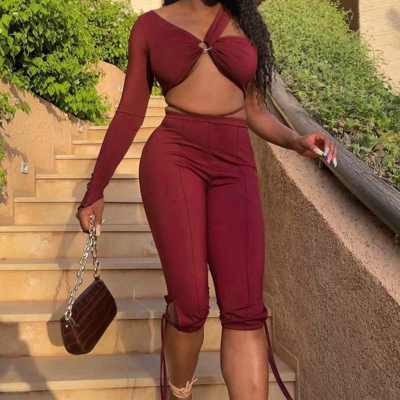 ソリッド カラーオータムウィンターパンツ ロング 秋物 冬物 ソリッドカラー ヨーロピアン 9/24 ナイトウェア mi114707340577