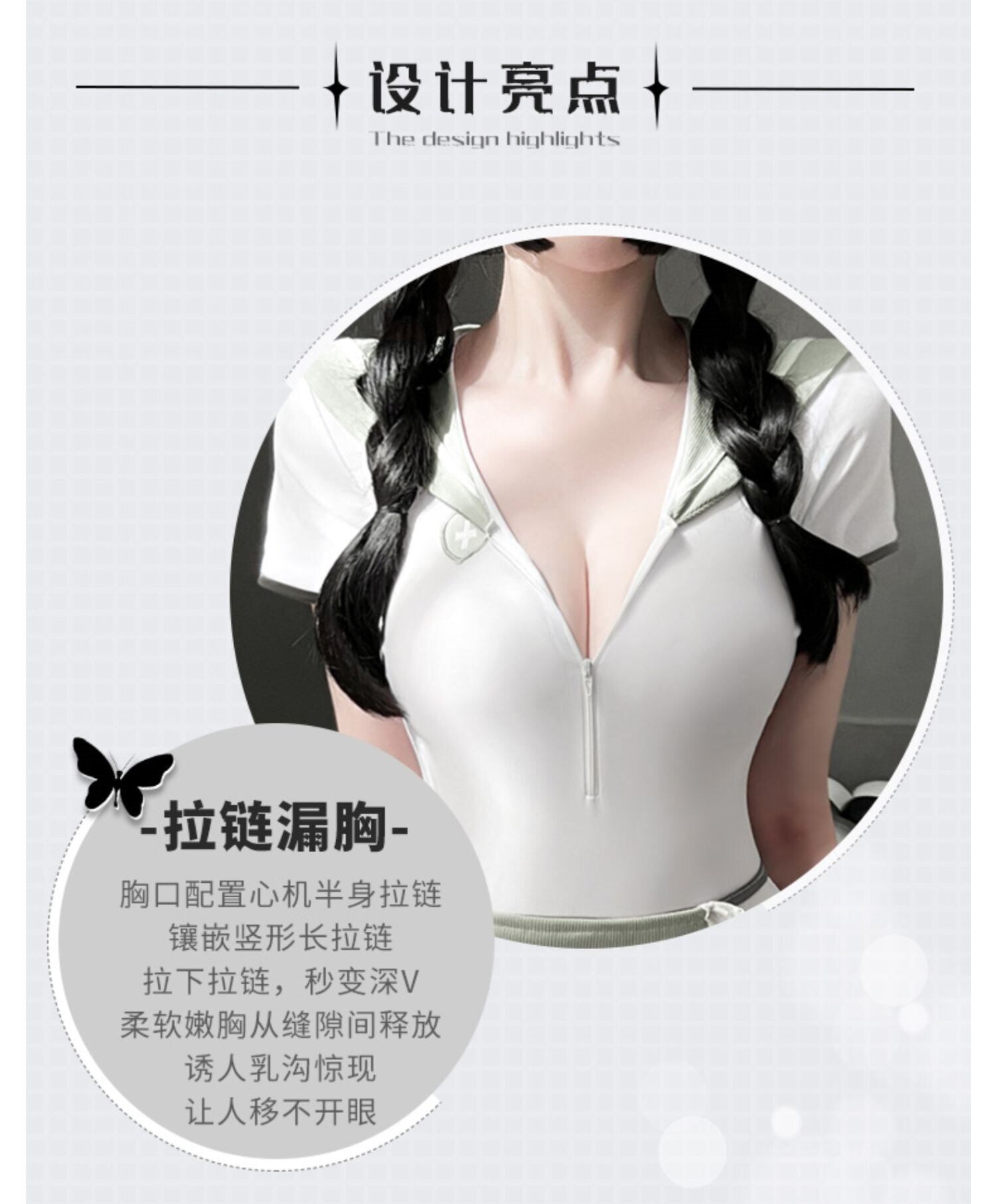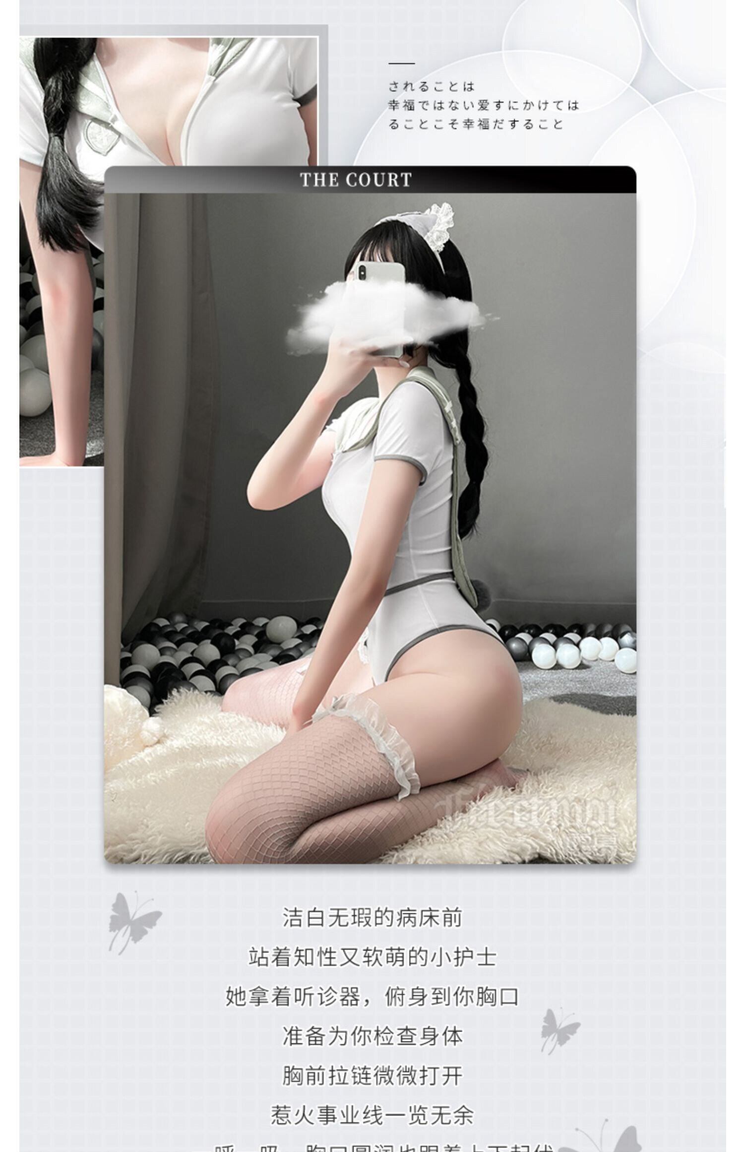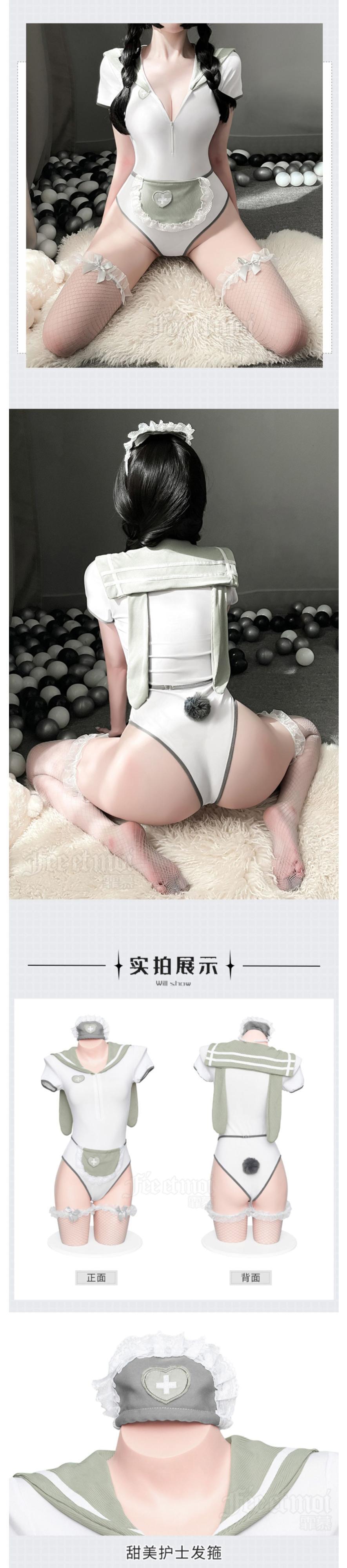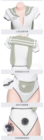 色:ホワイト+グレーグリーン[カチューシャ+オープンクロッチジャンプスーツ+周辺