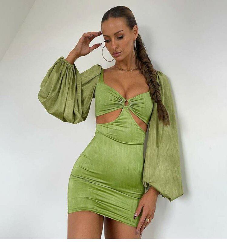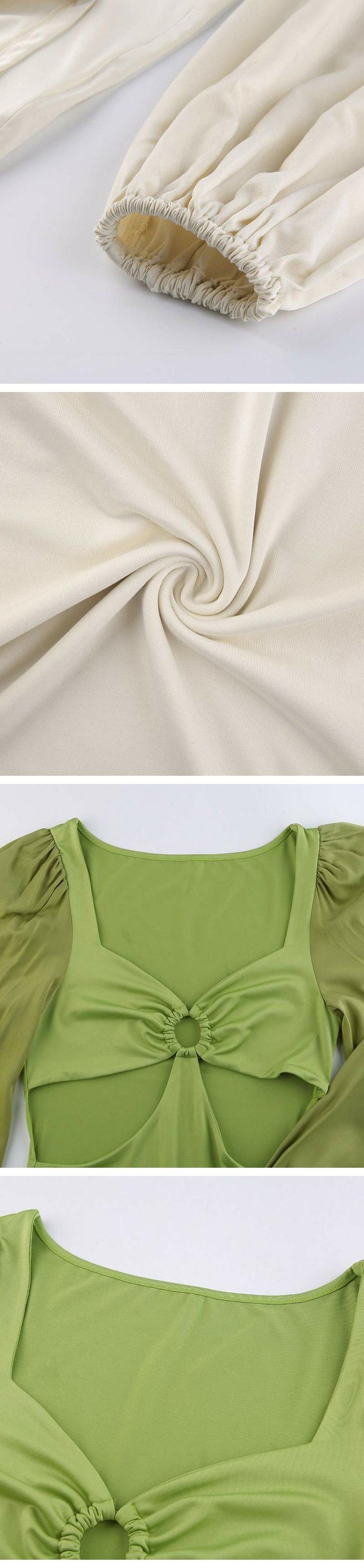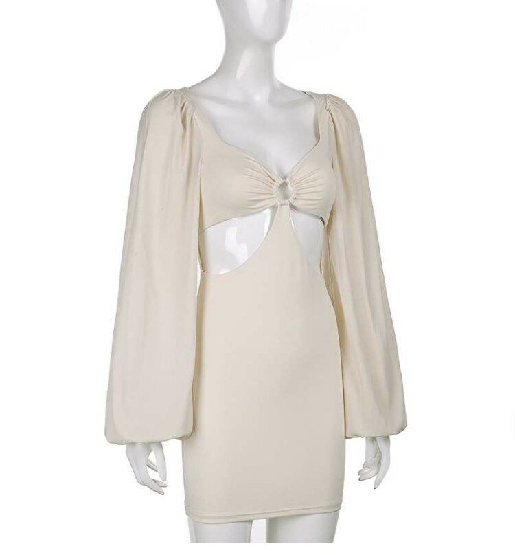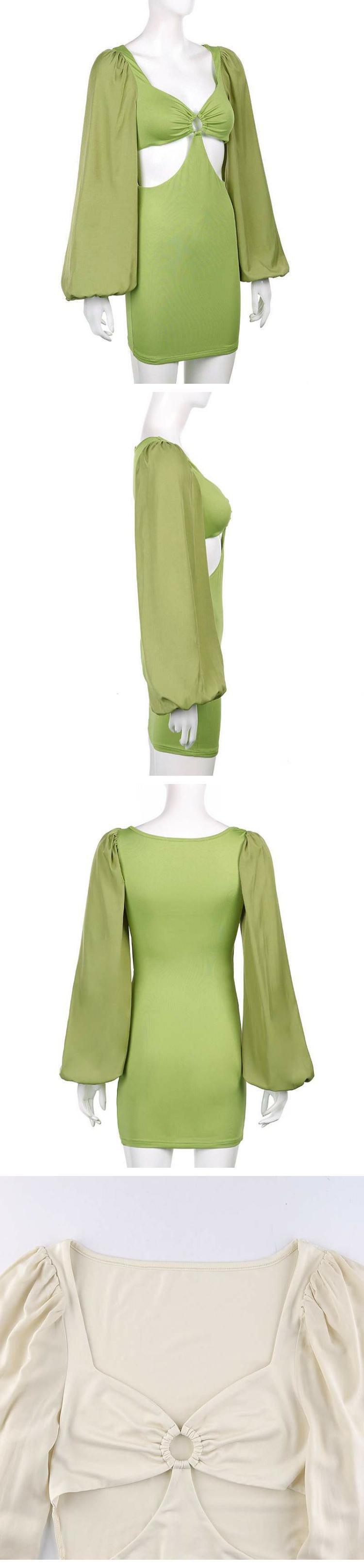 スタンダードソリッド カラースタイルオータムサイドウェストスリーブドレス ショート レトロ レース 秋物 ソリッドカラー 9/24 ナイトウェア mi1135134800608