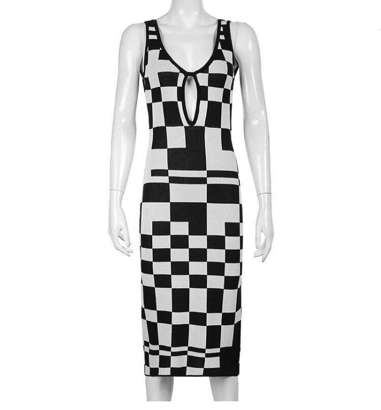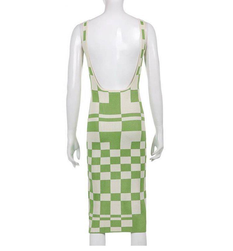スカート カジュアルスタイル格子柄ニットドレス ロング ヨーロピアン 9/24 ナイトウェア mi1126595708644