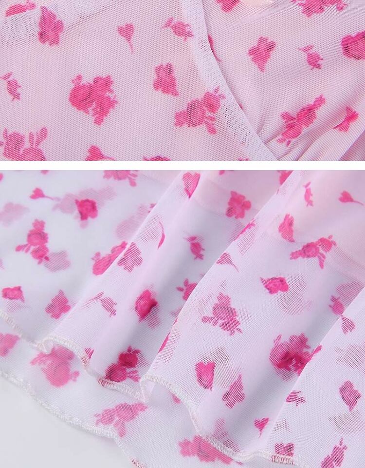 スタイルサマーフローラルスカート メッシュVネック 夏物 花柄 ヨーロピアン 9/24 ナイトウェア mi1194641340092