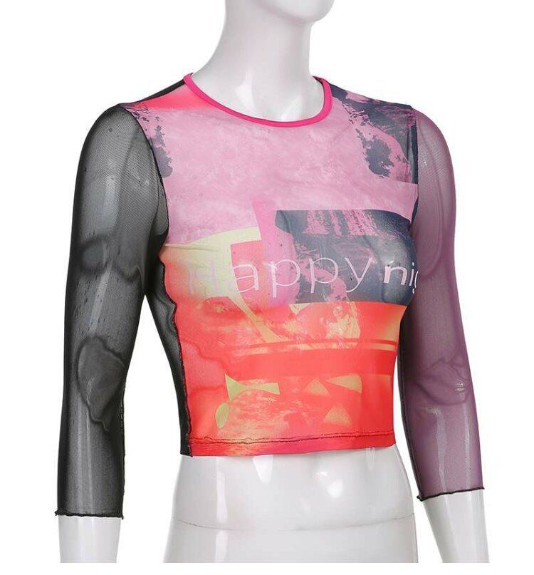 スタイルメッシュTシャツ ショートトップス プリント ヨーロピアン 9/24 ナイトウェア mi1118644195907