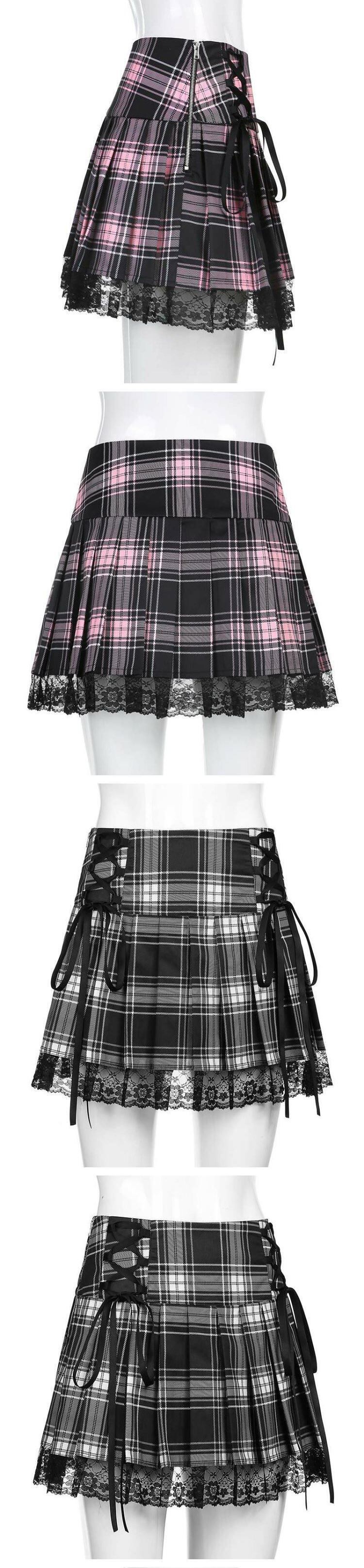 格子柄プリーツスカート スタイルレースストラップ ヨーロピアン ステッチ 9/24 ナイトウェア mi1127831158391
