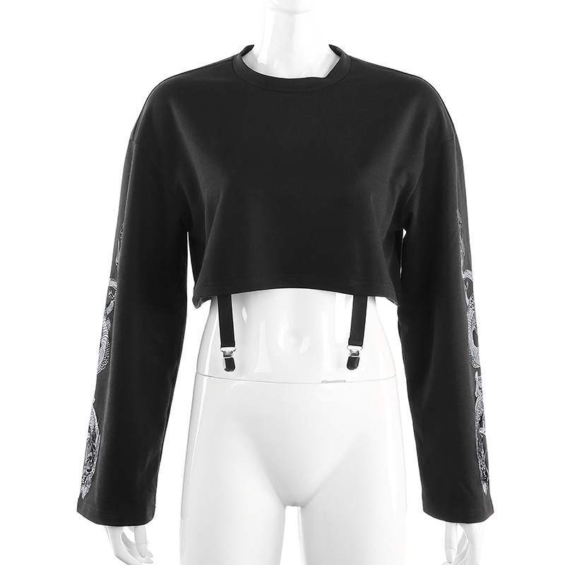 ショートオータムダークプリント柄ラウンドネック長袖スリーブセーター ジャケット トップス ロング 秋物 Oネック ヨーロピアン 9/24 ナイトウェア mi1169366645542