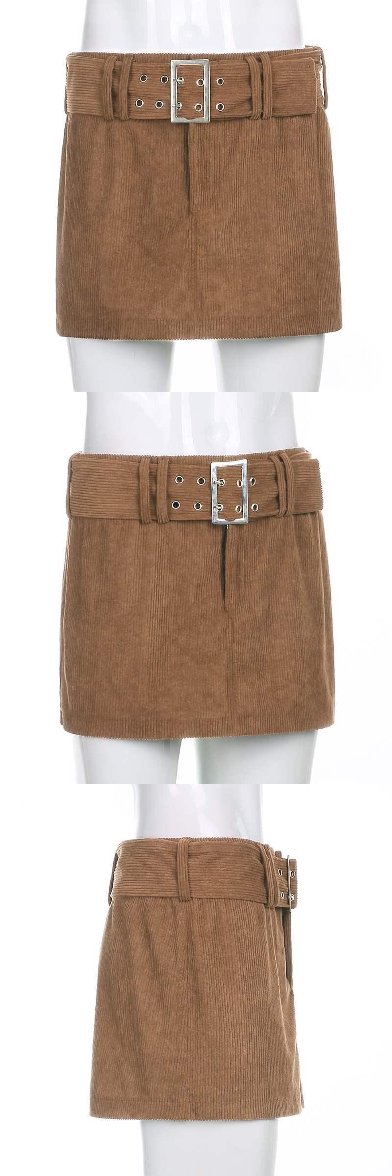 スカート コーデュロイウェストベルト スタンダードAラインショート レトロ ハーネス 9/24 ナイトウェア mi111934785204