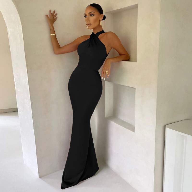 スタイルノースリーブウィンタースリムソリッド カラーバックレスドレス 冬物 ソリッドカラー ヨーロピアン 9/24 ナイトウェア mi1176091280195